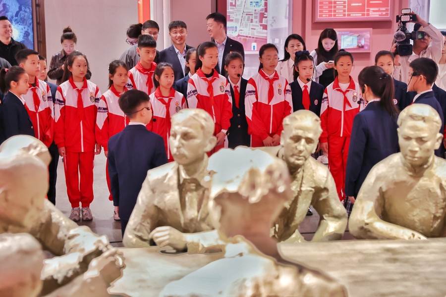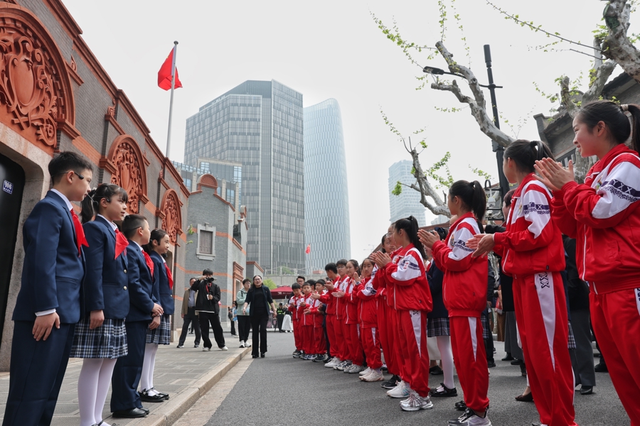 4月20日,黄浦区兴业路76号,中共一大会址的石库门建筑前,一群佩戴红领巾的少先队员正用清脆的童声讲述着百多年前那段开天辟地的历史。