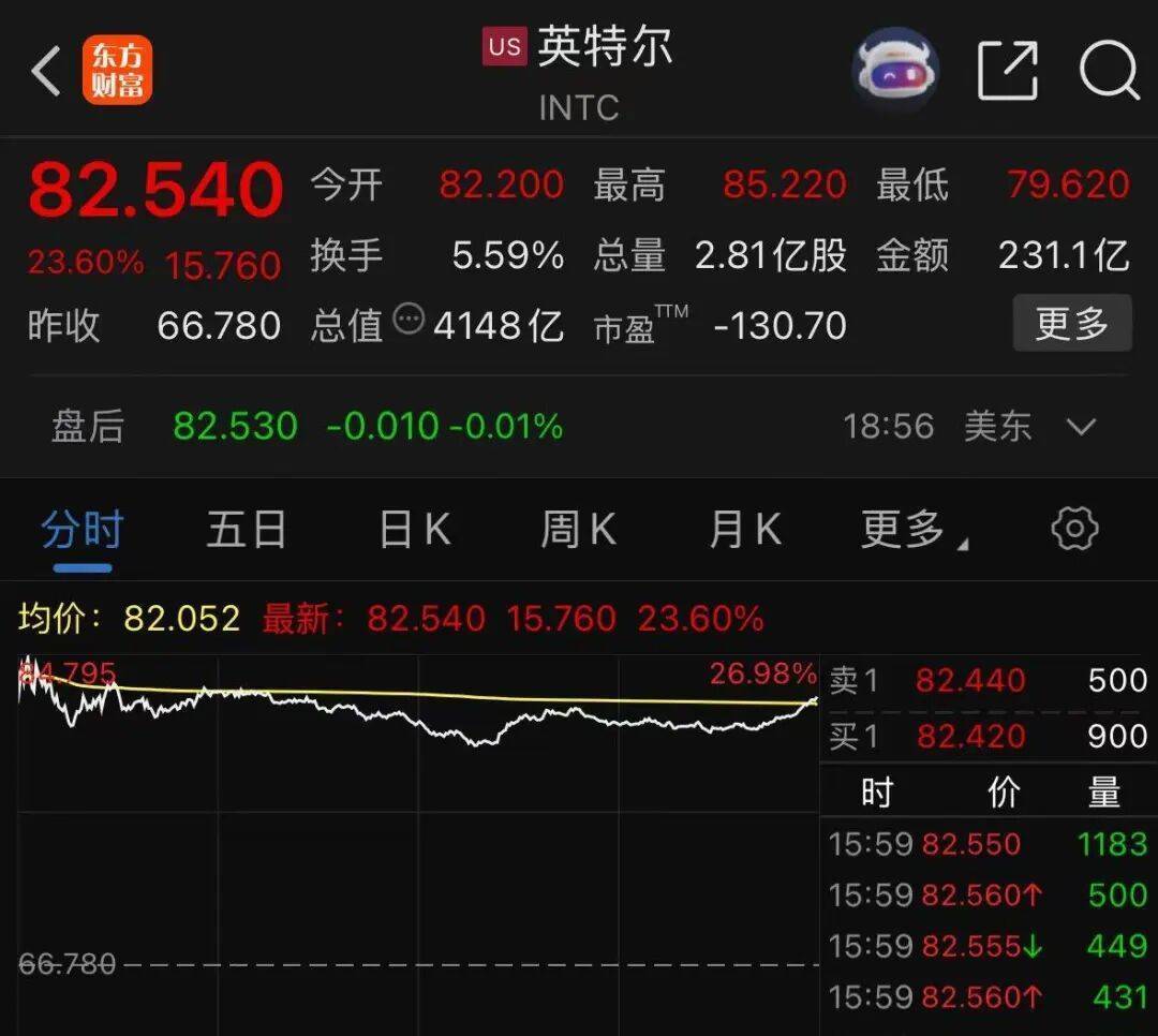 英特尔涨超23%,此前该公司发布的第二季度营收预期超出市场预期。在英特尔的带动下,AI硬件板块全线大爆发,分析师认为英特尔的强势表现将惠及整个CPU行业,Arm涨逾14%,AMD涨超13%,三者股价均创新高。