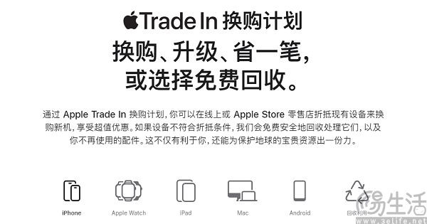 那么问题就来了,拥有4万亿美元市值、1330亿美元现金储备的苹果,难道是真的盯上了用户兜里的这三瓜两枣?当然不是,打开苹果官网、找到Apple Trade In换购计划的页面就能发现,苹果方面已经明明白白地写出,“如果设备不符合折抵条件,我们会免费安全地回收它们,以及你不再使用的配件。这不仅有利于你,还能为保护地球的宝贵资源出一份力。”